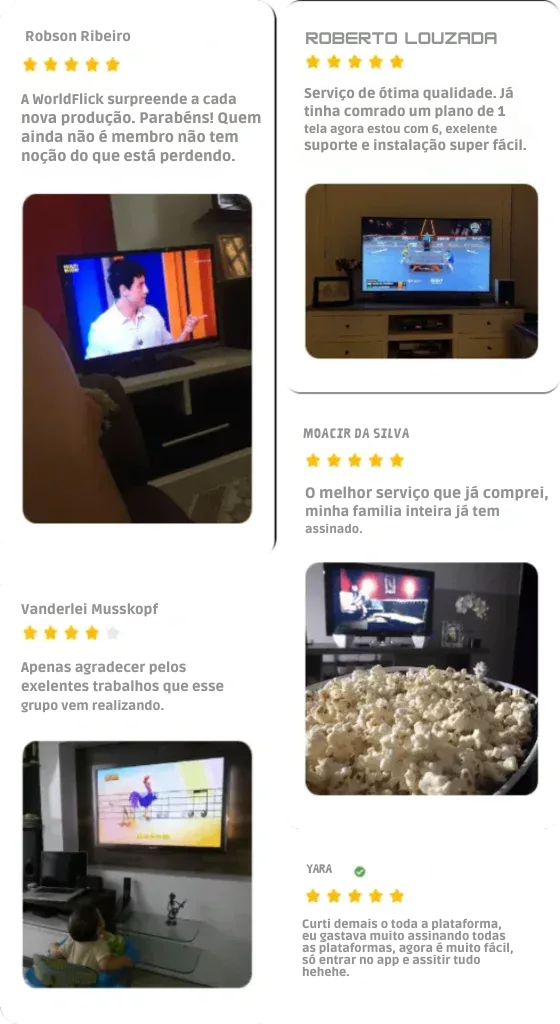 O WorldFlick oferece um aplicativo totalmente exclusivo compatível com seu celular, televisores, aparelhos de TV Box, videogame e muito mais.